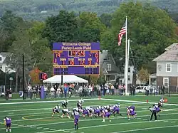 The football team is coached by Mark Raymond, who has held the position since the start of the 2016 season.[46] The team plays at Weston Field on campus.[23] The team has had 16 players named to the Division III All-America Team since 1974.[47] The program began varsity play in 1881.[48] As a NESCAC football team, the program is not permitted to play non-conference games or to participate in the NCAA Tournament.[49]
