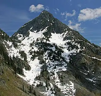 Williams Peak is a prominent 2,123-metre (6,965-foot) mountain summit located in the Chilliwack River valley of the Cascade Mountains in southwestern British Columbia, Canada. It is situated 14 km (9 mi) north of the Canada–United States border, 6 km (4 mi) northwest of Chilliwack Lake, and 6.7 km (4 mi) southeast of Foley Peak, which is its nearest higher peak. Williams Peak is the highest point of the South Hope Mountains, which is a subset of the Skagit Range.[3] Precipitation runoff from the peak drains into tributaries of the Chilliwack River. The mountain's name was officially adopted April 7, 1955, by the Geographical Names Board of Canada.[4] Williams Peak was first climbed July 1908 by James J. McArthur and E.T. de Coeli via the southwest ridge.[1]