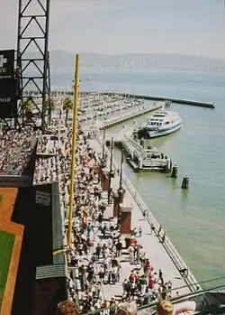 In the early years of Candlestick Park, the Giants home stadium, the area behind right field was open except for three small bleacher sections. When McCovey came to bat, typically those bleachers would empty as the fans positioned themselves on the flat ground, hoping to catch a McCovey home run ball.[24]