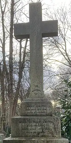 Smith died on 17 July 1891 and is buried with his wife Ann on the east side of Highgate Cemetery.[4]