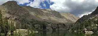 Willow Lake, also known as the lower Willow Creek Lake, is an alpine lake in Saguache County, Colorado, United States, located in the Sangre de Cristo Range within the Sangre de Cristo Wilderness in Rio Grande National Forest. The lake is accessed from the Willow Lake Trail (trail 865) at the South Crestone Lake Trailhead east of Crestone, Colorado. Willow Lake is directly north of Challenger Point and south of Mount Adams. Willow Creek is both the inflow and outflow to the lake, and there are waterfalls at both lake's inflow and outflow.[1][2]