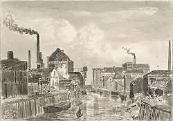 In June 2011 a planning application was submitted by Spencer Group for a waste-to-energy plant designed to generate 25.5 MW electrical and 3.4 MW gas energy via gasification and anaerobic digestion respectively. The plant was split over two sites, part on the site of the former cocoa and Spillers mills; and the second part to the north, west of Glass House Row.[62] The plant was to use approximately 150,000 tonnes of waste wood, plus 37,000 tonnes of locally sourced commercial and industrial waste.[63] The application was accepted in October 2011[64] and the project received a £19.9 million grant from the UK government (via the European Regional Development Fund) which was authorised by European Union in 2012.[65][66][67]
