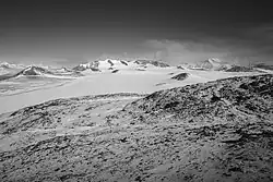 The Wilson Piedmont Glacier extends along the coastal plain of the west coast of the Ross Sea from Granite Harbor south to McMurdo Sound. Most of its input is from direct precipitation, but it receives some inflows from alpine glaciers. It has a broad dome with a divide near the McMurdo Dry Valleys. Most ice flows east to the Ross Sea, where the glacier terminates and comes afloat in the sea along its eastern margin. Some ice flows west and contributes to the Wright Lower Glacier and the Victoria Lower Glacier. In the past there was more westward flow than at present.[2]