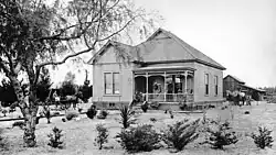 Wilson's sister Mollie moved to Los Angeles in 1886.[4] Wilson, who was living in Storm Lake, Iowa at the time,[5] visited her in 1890, never left, and brought his family soon after.[3] Wilson and his wife bought 22 acres (8.9 ha) of land[6] on what today is the North Hollywood Business District.[7] Legend had it the family also shipped their house in Iowa piece-by-piece to the area. The house was re-constructed in 1891, at which point it became the first house in the San Fernando Valley's southeastern corner.[5] The house was located where El Portal Theater is now.[3]
