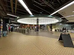 Concurrent with the opening of the Toronto–York Spadina Subway Extension (TYSSE) on 17 December 2017, this station became one of the first eight stations to discontinue sales of legacy TTC fare media (tokens and tickets), previously available at a fare collector booth. Presto vending machines were available to sell Presto cards and to load funds onto them.[7] On 3 May 2019, this station became one of the first ten stations to sell Presto tickets via Presto vending machines.[8]