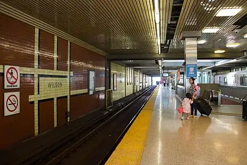 Wilson is one of two Yonge–University line stations on the west side of the line, along with St. Clair West, that were designed by the TTC's in-house architects.[13]