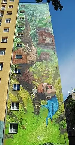 In July 2009, the-then largest mural in the country was created near the park. After a week of work, nine young artists from Bydgoszcz, Olsztyn and Łódź realized a painting depicting Peter Pan under a tree with fairy-tale characters.[4]