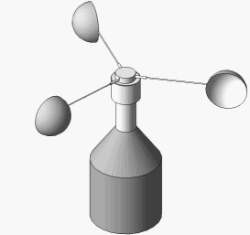 An anemometer is one of the tools used to measure wind speed.[15] A device consisting of a vertical pillar and three or four concave cups, the anemometer captures the horizontal movement of air particles (wind speed).