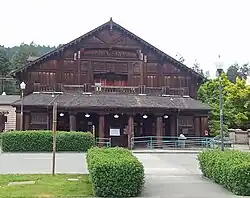 The Winema Theater is a historic wooden theater building in the lumber town of Scotia, California. Built in a rustic style with redwood logs, it was designed by San Francisco architect Alfred Henry Jacobs and built in 1919.[1] The first show was held in 1920.[2] It was renovated in 2002.[1][3] A historic marker is outside the theater.[4] It has a gabled roof and a colonnade of redwood logs.[5]