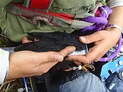 Wing chord is an anatomical measurement of a bird's wing. The measurement is taken with the wing bent at a 90-degree angle, from the most prominent point of the wrist joint to the most prominent point of the longest primary feather. It is often taken as a standard measurement of the proportions of a bird and used to differentiate between species and subspecies.[1]