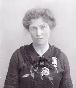 Winifred Jones (b. unknown, d. 1955) was an English suffragette. Jones was arrested and imprisoned several times in 1909 and 1910 for her participation in suffragette protests and the Women's Social and Political Union's window-smashing campaign.[1] In the 1920s, she contributed to efforts to repair the statue of Elizabeth I in St-Dunstan’s-in-the-West Church, London.