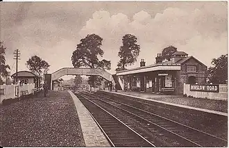 The station was opened by the Aylesbury and Buckingham Railway (A&BR) on 23 September 1868[1][2][3] as part of its 12+3⁄4-mile (20.5-kilometre) route from Aylesbury to Verney Junction where it joined the Buckinghamshire Railway's Oxford to Bletchley line.[4][5][6] The line was single track and worked from the start by the Great Western Railway, which provided a service of three trains each way daily.[5][7] The A&BR, which had for some time been in a parlous financial state, was absorbed by the Metropolitan Railway with effect from 1 July 1891.[6][8][9][10] From 2 April 1906, all Metropolitan services north of Harrow South Junction to Verney Junction were run by the Metropolitan and Great Central Joint Railway; this continued until 6 July 1936 when the London Passenger Transport Board, which had taken over the Metropolitan in 1933, withdrew local passenger services as an economy measure.[11][9][8][12] Through services ceased entirely on 7 September 1947 and the route closed.[13][11][9][14]