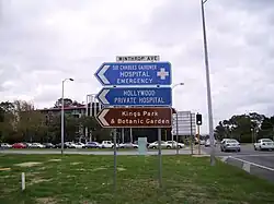 Winthrop Avenue is a major north–south road in the Perth suburbs of Nedlands and Crawley. For most of its length, the road travels alongside the south-western edge of Kings Park, connecting Thomas Street with Stirling Highway, Mounts Bay Road, and the University of Western Australia's Crawley campus.[1] It is the southernmost section of State Route 61,[2] which links Crawley with West Perth and Yokine.