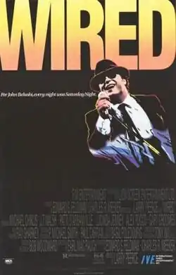 Wired is a 1989 American biographical film of comedian and actor John Belushi,[4] directed by Larry Peerce.[5] It was based on the 1984 book of the same title by Washington Post journalist Bob Woodward, and adapted for the screen by Buckaroo Banzai creator Earl Mac Rauch.[6] It stars Michael Chiklis in his film debut as Belushi.[7] Wired was both a critical and a commercial failure. The film has yet to be released on DVD or Blu-ray, and the videocassette originally released by International Video Entertainment is out of print.