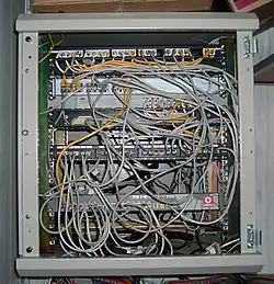 A wiring cupboard is a small room commonly found in institutional buildings, such as schools and offices, where electrical connections are made. While they are used for many purposes, their most common use is for computer networking where it may be called a premises wire distribution room (PWD room). Many types of network connections place limits on the distance between end user equipment, such as personal computers, and network access devices, such as routers. These restrictions might require multiple wiring cupboards on each floor of a large building.