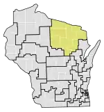 The 12th Senate district of Wisconsin is one of 33 districts in the Wisconsin Senate.[1] Located in northern Wisconsin, the district comprises Florence, Forest, Langlade, Lincoln, Marinette, Oneida, and Vilas counties, and parts of northern Oconto County, northwest Shawano County, and northeast Marathon County. It contains the cities of Antigo, Eagle River, Marinette, Merrill, Peshtigo, Rhinelander, and Tomahawk.[2]