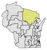 | 106th | 2023–2024 | ![]() part Marathon County, northern Marinette County, northern Oconto County, part of Shawano County, & most of Vilas County | |||