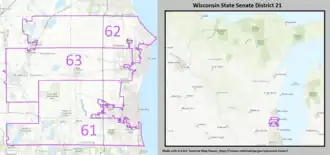 - ^ "Senate District 21". Wisconsin Legislature. Retrieved March 14, 2021.