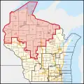 Wisconsin's 7th congressional district is a congressional district of the United States House of Representatives in northwestern and central Wisconsin; it is the largest congressional district in the state geographically, covering 20 counties (in whole or part), for a total of 18,787 sq mi. The district contains the following counties: Ashland, Barron, Bayfield, Burnett, St. Croix, Chippewa (partial), Clark, Douglas, Florence, Forest, Iron, Jackson (partial), Juneau (partial), Langlade, Lincoln, Marathon, Monroe (partial), Oneida, Polk, Price, Rusk, Sawyer, Taylor, Vilas, Washburn, and Wood (partial).