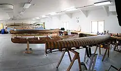 The museum's Exhibit Hall features displays of canoes and canoe related ephemera. It includes craft from the golden age of North American canoeing as well as work by contemporary builders. The building traditions of the eastern seaboard, the midwest, and Canada are represented. Its Canoe Shop is a 2,500-square-foot (230 m2) facility designed support a new generation of builders and canoe restorers.