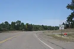 North of Merrill, WIS 107 runs along the eastern banks of the Wisconsin River as a rural two-lane highway all the way to its northern terminus with County Trunk Highway S (CTH-S) outside of Tomahawk.[2] The terminus is somewhat unusual, as state highways in Wisconsin normally end at another state trunk highway. CTH-S, however, was the former route of US Highway 51 (US 51) as it entered Tomahawk. When the US 51 bypass freeway was finished east of the city, the former route of US 51 was turned back to county control, resulting in the unusual terminus.