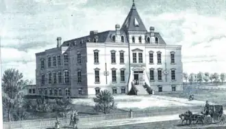 Wisconsin Industrial School for Girls (formerly, Milwaukee Industrial School) was a 19th-century American reform school in Milwaukee, Wisconsin. The Wisconsin Industrial School for Girls was the only secular reformatory institution in the state where delinquent and neglected girls could make a home.[1] The school's purpose was the prevention of crime and pauperism of unfortunate girls; and the restoration of those who had fallen into bad habits, or inherited vicious tendencies. The system of discipline and education was adapted to the condition and needs of the pupils.[2] There were several buildings associated with the school, including the Main Building, Russell Cottage, Lynde Cottage, Cottage Annex, Merrill Model Home, Assembly Hall, Steward's Home, Steam Heating Plant and Barn