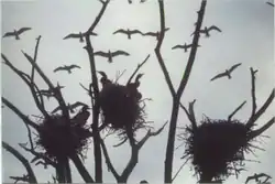The nesting grounds of the islands support many types of colonial birds, including shorebirds, seabirds, and ducks. Spider and Gravel Islands are one of the westernmost breeding grounds of the great black-backed gull. All three islands have significant colonies of herring gulls and double-crested cormorants. Caspian terns can be found on Gravel Island. Spider Island also supports a number of waterfowl species, including the American black duck, Canada geese, and the mallard. Red-breasted mergansers and great blue herons can be found on Hog Island.