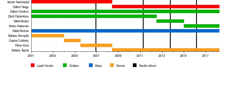 | Past members | Gabor Nagy Gabor Kovacs Anton Kabanen Mate Molnar Balazs Agota Zsolt Galambos Peter Kern Istvan Nachladal Csaba Czebely Balazs Hornyak |