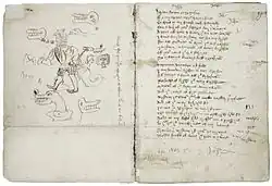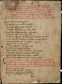 Wisdom (also known as Mind, Will, and Understanding) is one of the earliest surviving medieval morality plays. Together with Mankind and The Castle of Perseverance, it forms a collection of early English moralities called "The Macro Plays". Wisdom enacts the struggle between good and evil; as an allegory, it depicts Christ (personified in the character of Wisdom) and Lucifer battling over the Soul of Man, with Christ and goodness ultimately victorious. Dating between 1460 and 1463, the play is preserved in its complete form in the Macro Manuscript, currently a part of the collection of the Folger Shakespeare Library (MS V.a. 354).[1] A manuscript fragment of the first 754 lines also belongs to the Bodleian Library (MS Digby 133).[2] Although the author of Wisdom remains anonymous, the manuscript was transcribed and signed by a monk named Thomas Hyngman. Some scholars have suggested that Hyngman also authored the play.