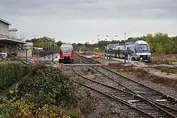 Wissembourg station is a railway station serving the town of Wissembourg in the department of Bas-Rhin in northeastern France. It is a terminus station at the junction of two railway lines: towards Strasbourg and Neustadt an der Weinstraße (Germany). The station is served by regional trains towards Haguenau and Strasbourg (TER Grand Est) and towards Landau and Neustadt an der Weinstraße (Deutsche Bahn).[1][2]