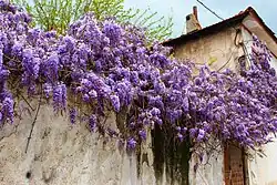 Wisteria is a genus of flowering plants in the legume family, Fabaceae (Leguminosae). The genus includes four species of woody twining vines that are native to China, Japan, Korea, Vietnam, southern Canada, the Eastern United States, and north of Iran. They were later introduced to France, Germany and various other countries in Europe. Some species are popular ornamental plants. The genus name is also used as the English name, and may then be spelt 'wistaria'.[2][3] In some countries in Western and Central Europe, Wisteria is also known by a variant spelling of the genus in which species were formerly placed, Glycine. Examples include the French glycines, the German Glyzinie, and the Polish glicynia.