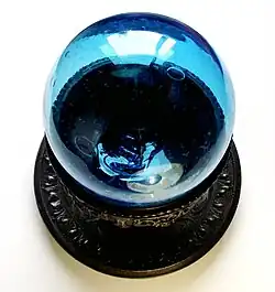 A witch ball is a hollow sphere of glass. Witch balls were hung in cottage windows in 17th- and 18th-century England to ward off evil spirits, witches, evil spells, ill fortune and bad spirits.[1]