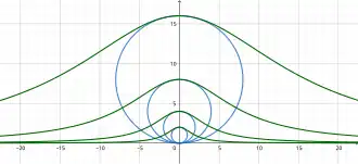 - ^ Haftendorn, Dörte (2017), "4.1 Versiera, die Hexenkurve", Kurven erkunden und verstehen (in German), Springer, pp. 79–91, doi:10.1007/978-3-658-14749-5, ISBN 978-3-658-14748-8. For the osculating circle, see in particular p. 81: "Der erzeugende Kreis ist der Krümmungskreis der weiten Versiera in ihrem Scheitel."