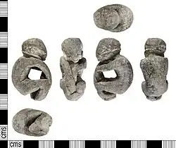 In addition to curse tablets, other magical materials included intricately engraved gems and amulets that symbolized desired results, often featuring inscriptions invoking particular deities to enhance the spells' efficacy. Professional experts compiled elaborate formulas of magical recipes, further legitimizing these practices. Bound lead figurines found at sites like Tell Sandahannah frequently depicted sexual features, potentially embodying desires or curses.[23] Together with the curse tablets, they suggest that professional magoi kept ready-made tablets and figurines for customers, indicating a market for magical services.