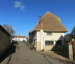 Wychert or witchert (with a number of variant spellings existing and meaning "white earth") is a natural blend of white chalk and clay[1] which is mixed with straw to make walls and buildings, usually then thatched or topped with red clay tiles.