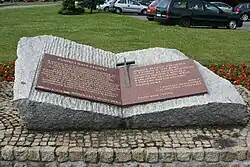 Families of deported and murdered Poles, as well as the remaining residents of Grzywno were expelled to the so-called General Government in late 1939,[21] and in 1940 also owners of shops, workshops and bigger houses were expelled, so their properties could be handed over to German colonists as part of the Lebensraum policy.[24] The Germans also robbed the precious historical collections of the Diocese of Włocławek and the Baroque Franciscan monastery[13] and closed down the cathedral.[25] The city's central square, Plac Wolności ("Liberty Square"), was renamed Adolf-Hitler-Platz by the Germans.[26] By the time the war ended, nearly the entire Jewish population of more than 10,000 had been murdered.