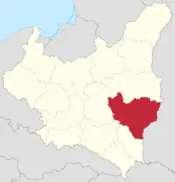 The Wołyń voivodeship was located at the south-eastern corner of Poland, bordering the Soviet Union to the east, the Lublin Voivodeship to the west, the Polesie Voivodeship to the north, and the Lwów and Tarnopol Voivodeships to the south. Initially, the Voivodeship’s area in the new Poland was 30,276 square kilometres. On 16 December 1930, Sarny County, comprising 5,478 km² of land, was transferred from Polesie Voivodeship to the Wołyń Voivodeship.[12] As a result, the total area of the Wołyń Voivodeship increased to 35,754 km², making it Poland's second largest province.