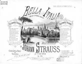 "Wo die Zitronen blühen" (German pronunciation:[ˈvoːdiːtsiˈtʁoːnənˈblyːən]; "Where the Lemons Blossom", or "Where the Citrons Bloom"), Op. 364, is a waltz by Johann Strauss II written in 1874. The waltz was composed during a tour of the composer in Italy where he travelled with the Langenbach Orchestra of Germany and performed the work at the Teatro Regio in Turin on 9 May 1874.