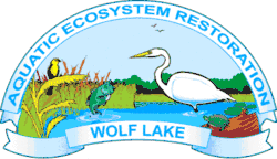 A $7.25 million ecosystem restoration project for Wolf Lake was carried out by the Chicago District of the U.S. Army Corps of Engineers, with the support of the Illinois Department of Natural Resources and the City of Hammond. Completed in September 2007, the project sought to improve the overall quality of the lake ecosystem for native species. Natural water levels in the lake were restored by clearing channels and creating openings in dikes and causeways. Additional habitat was created by constructing approximately 25 acres (10 ha) of new aquatic and wetland habitat plantings. Also, approximately 5,000 feet (1,500 m) of shoreline was restored, deep holes were created to locally diversify the lake bottom, and herbicidal and biological controls were implemented to control aquatic and shoreline exotic and undesirable plant species.[15] While for many years it was commonplace for park visitors to feed the ducks and other birds that lived at the lake, this produced an unnaturally and unsustainably large population, as well as many non-native birds such as domesticated breeds of ducks and geese. It is no longer permitted that visitors feed wildlife and as a result the populations have dropped to a sustainable and natural population.
