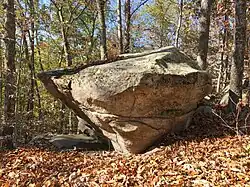 Wolf Rock, also known as Wolfpit Rocks, Woolfes Rocks, and Wolfe's Rock is the name of a notable gneiss and quartz conglomerate glacial erratic in Mansfield, Connecticut, perched atop a 40-foot cliff. The rock itself is six feet tall and almost round.[1] The surrounding landscape also contains many boulders and crags. The rock was once part of a tower used to view the landscape.