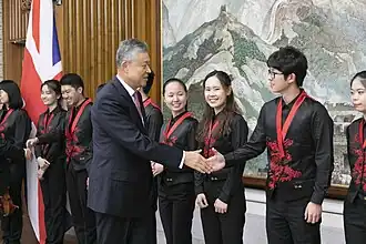 In November 2019, Ambassador Gui Congyou threatened Sweden during an interview with broadcaster Swedish PEN saying that "We treat our friends with fine wine, but for our enemies we got shotguns", over the decision to award Gui Minhai with the Tucholsky Prize.[45] All eight major Swedish political parties condemned the Ambassador's threats. On 4 December, after the prize had been awarded, Ambassador Gui said that one could not both harm China's interests and benefit economically from China. When asked to clarify his remarks he said that China would impose trade restrictions on Sweden, these remarks were backed up by the Chinese Foreign Ministry in Beijing.[45][46][47] The embassy has systematically worked to influence the reporting on China by Swedish journalists.[48] In April 2021 it was revealed that the Chinese embassy threatened a journalist working for the newspaper Expressen. Several political parties publicly expressed that they believe the ambassador should be declared persona non grata and deported on the basis that his actions violated the constitution of Sweden.[49] Within Gui's first two years of the ambassadorship, Sweden's Foreign Ministry summoned him over forty times to protest Gui's remarks.[39]