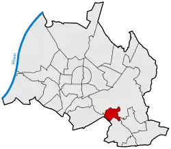 Wolfartsweier is a village and a quarter of Karlsruhe, Baden-Württemberg, Germany. Its population is 3,068 (2020).[1] It was first mentioned in 1261 AD under the name of "Wolvoldeswilere". The local church was first mentioned in 1329. A small creek, called Wettersbach, runs through the village, but in an underground canal for most of its way. Wolfartsweier has a town hall, a Protestant and a catholic church and community centres, and a public outdoor swimming pool.
