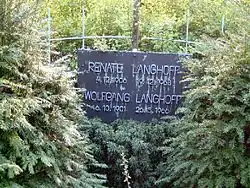 Langhoff and his wife are buried in the 'Zentralfriedhof', made famous by Wolf Biermann's song 'Friedhof der Hugenotten'. Biermann's song refers to Langhoff, as well as to Hanns Eisler, who arranged the music of 'Moorsoldaten', and is also buried there.[4]