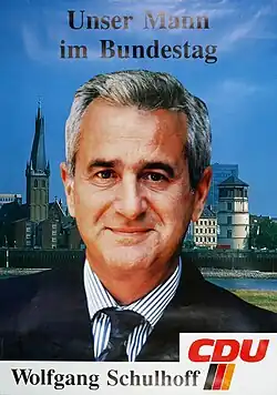 Wolfgang Schulhoff (14 December 1939 – 17 February 2014) was a German politician. He was a member of the Bundestag , representing Düsseldorf .[ 1] He was also a member of the CDU.