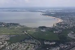 Wollaston Beach is the largest public beach in the Boston Harbor. The beach is located parallel to Quincy Shore Drive in North Quincy, Massachusetts, which was constructed to provide access to the bay beach for Greater Boston. Wollaston beach expands Quincy Bay forming part of Boston Harbor. The northern end of the beach is the Native American historical site, Moswetuset Hummock which is where the original Moswetuset Sac'hem (Chief) had a tribal council.