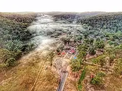 Due to the park's ruggedness, much of it is undiscovered by humans and the many canyons have yet to be explored.[5][6] The only known living wild specimens of the Wollemi pine (Wollemia nobilis) were discovered in 1994.[7] Special efforts were made to protect the trees when the 2019-20 Australian bushfires burned through the park.[8]