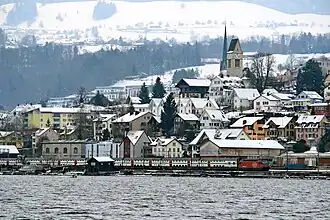 Wollerau is a municipality in Höfe District in the canton of Schwyz in Switzerland. It lies on the upper Zürichsee.