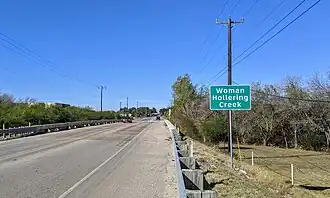 Woman Hollering Creek is a creek Bexar County, Texas, United States. At one point, it crosses Interstate 10, between Seguin, and San Antonio. It is a tributary of Martinez Creek, which is a tributary of Cibolo Creek, a tributary of the San Antonio River.