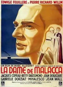 Woman of Malacca (French: La dame de Malacca) is a 1937 French drama film directed by Marc Allégret and starring Edwige Feuillère, Pierre Richard-Willm and Betty Daussmond. It was based on a 1935 novel by the French writer Francis de Croisset. It was a major success on its initial release.[1] It was shot at the Epinay Studios in Paris. The film's sets were designed by the art director Jacques Krauss. A separate German-language version Another World was also made.