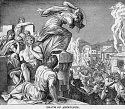 The woman of Thebez is a character in the Hebrew Bible, appearing in the Book of Judges. She dropped a millstone from a wall in order to kill Abimelech.